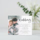 Convite para Casamento de Código QR de Foto de Script Moderno de Orçamento. Um alternativo de 4,5 pol x 5,6 pol com preço inferior. Disponível em um STOCK DE CARTÃO SEMI-GLOSS 110 lb, que é a opção padrão (mais espesso para convites), OU um STOCK de PAPEL THINNER FINISH 80 lb FINISH (ideal para gabinetes). Adicione seu código QR ao seu site de casamento no fazer traseiro, esta é uma opção conveniente para seus convidados para RSVP e veja todos os detalhes sem a necessidade de RSVP separado e cartões de detalhes. Seu código QR será gerado automaticamente para atualizar o código de amostra no design, quando você simplesmente alterar o URL de amostra no modelo com o URL do seu próprio site de casamento. Um design minimalista para que todos saibam suas boas notícias. Basta substituir o exemplo de foto pelo seu favorito. Uma camada de camada de gradiente está sobre a sua foto, de modo que ela desaparece à medida que ela chega ao centro com o texto parcialmente sobreposto no topo. O casamento está em uma escrita moderna e personaliza facilmente o resto do texto.