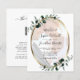 Orçamento Eucalyptus Foto All em um Código QR RSVP Dourado Convite de Casamento... Nosso convite de casamento de foto-botânica "QR Code RSVP" apresenta uma estrutura oval metálica dourada embelezada com folhas de sábio e eucalipto verde esmeralda junto a uma foto da noiva e do noivo em um fundo branco nítido. Sua foto será colocada em uma camada abaixo de uma transparência branca para "esmaecer" as cores de alguma forma, para que o texto no topo seja legível. A parte traseira do convite também exibe o código QR do seu site de casamento, assim como o próprio URL do site, permitindo que seus convidados RSVP online sejam facilmente visualizados e todos os detalhes normalmente enviados em um pacote de casamento. Este convite de casamento ao estilo moderno foi concebido para ser elegante e consciente do orçamento... para não mencionar a poupança de tempo. Todo texto de exemplo pode ser facilmente revisado com suas próprias informações sobre o modelo de personalização. NOTA: Os cartões de orçamento não vêm automaticamente com envelopes, assim como os cartões de convite tradicionais, mas você pode comprá-los na mesma página na saída, se desejar. Tudo isso em um design RSVP de código QR também está disponível em um convite de casamento tradicional 5x7.