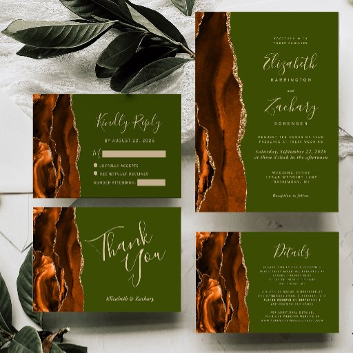 Burnt Orange Gold Agate Olive Green Wedding SuiteCriado por Akhates Designs
