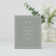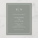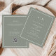Estes elegantes, modernos e orçamentários convites para casamento são impressos em uma folha de papel. Eles apresentam um simples design de texto verde-sábio e minimalista branco, com um quadro clássico na fronteira. Adicione suas iniciais ou monograma para torná-las completamente suas. A parte de trás do convite tem espaço para adicionar qualquer detalhe de convidado, além de um código de QR digitalizável para que os convidados possam RSVP on-line no seu site de casamento.