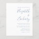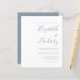 Este simples convite de casamento moderno apresenta texto azul empoeirado sobre fundo branco. Adicione os nomes da noiva e do noivo na caligrafia de escrita manual do na moda e os detalhes na fonte sans serif. O verso oferece espaço para detalhes do casamento, juntamente com um código QR que os convidados podem digitalizar para visitar seu site e RSVP, o que economiza o custo de impressão e envio de RSVP separados. NOTA: os envelopes não são incluídos automaticamente nestes convites de orçamento, portanto lembre-se de escolher a opção "envelopes brancos"!
