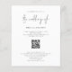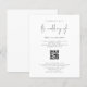 Um orçamento com um preço menor de 4,5 x 5,6" de semivrofe de 110 lb, semelhante em espessura a um cartão postal. Há um por folha. Convite para Casamento de Código QR de Script Moderno de Orçamento. Adicione seu código QR ao seu site de casamento para que seus convidados possam RSVP e ver todos os detalhes on-line sem a necessidade de gabinetes separados. Uma tipografia informal em preto para o título principal "Casamento de complementar o resto do texto que você pode facilmente personalizar".