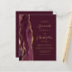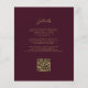 A borda esquerda deste elegante convite de casamento moderno apresenta uma cor vermelha e borrifada, com uma falsa brilha de ouro. O texto personalizável combina um script dourado e fontes sans serif em um fundo burgundy. O verso fornece espaço para detalhes do casamento em um fundo sólido de burgundy, junto com um código QR que os convidados podem digitalizar para visitar seu site e RSVP, o que economiza o custo de imprimir e enviar cartões RSVP separados.