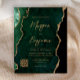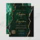 Este elegante convite de casamento apresenta uma imagem de fundo da emerald green watercolor agate, aparada com falso brilho dourado. O texto personalizável combina manuscrito, protetor e fontes itálicas de cor dourada. Precisa adicionar mais informações? Personalize facilmente o código QR para direcionar os convidados para o seu site de casamento. O verso apresenta um design de esmeralda verde e ouro.