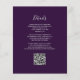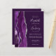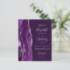 A borda esquerda deste elegante convite de casamento moderno apresenta uma cor d'água roxa, borda agitada com falso brilho prateado. O texto personalizável combina letra manuscrita, chapa e fontes itálicas em cinzas prateadas em fundo roxo profundo. O verso fornece espaço para detalhes do casamento em um fundo roxo sólido, junto com um código QR que os convidados podem digitalizar para visitar seu site e RSVP.