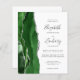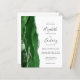 A borda esquerda deste elegante convite de casamento moderno apresenta um caçador de aquarela verde agata borda com falso brilho prateado. O texto personalizável combina manuscrito, copperplate e fontes itálicas em cinzas de carvão em um fundo branco. O verso fornece espaço para detalhes do casamento em um fundo branco sólido, junto com um código QR que os convidados podem digitalizar para visitar seu site e RSVP, o que economiza o custo de imprimir e enviar cartões RSVP separados.