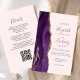A borda esquerda deste elegante convite de casamento moderno apresenta uma cor d'água roxa, borda agitada, aparada com falso brilho dourado. O texto personalizável combina letra de escrita manual, chapa de impressão e fontes itálicas em cinzas de carvão em um fundo cor-de-rosa esbranquiçado. Adicione mais detalhes no verso, juntamente com um código QR para ajudar seus convidados a visitar seu site de casamento.