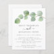 Um valor para o alternativo do ORÇAMENTO em tamanho menor de 4,5 x 5,6" de semirbrilho de 110 lbs, que é de espessura semelhante a um cartão postal (no entanto, não é adequado para uso como cartão postal). POR FAVOR, OBSERVE QUE HÁ UM convite por folha. Convite para Casamento de Código QR de Eucalyptus Moderno de Orçamento. Adicione seu código QR ao seu site de casamento no verso faz com que esta seja uma opção conveniente para seus convidados para RSVP e veja todos os detalhes sem a necessidade de RSVP separado e cartões de detalhes. Um design minimalista com um galho elegante de eucalipto verde que vai de cima à direita para a esquerda com na moda de tipografia por baixo. Personalize facilmente o texto para seus próprios detalhes. Você também pode alterar estilos e cores de texto, bem como as cores de fundo, por meio da opção personalizar mais, se desejar.
