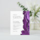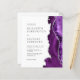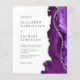 A borda direita deste elegante convite de casamento moderno apresenta uma cor d'água púrpura e borda agitada com falso brilho prateado. O texto personalizável combina fontes de cinza de carvão se, copperplate e itálico em um fundo branco. O verso fornece espaço para detalhes do casamento em um fundo branco sólido, junto com um código QR que os convidados podem digitalizar para visitar seu site e RSVP, o que economiza o custo de imprimir e enviar cartões RSVP separados.