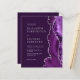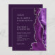 A borda direita deste elegante convite de casamento moderno apresenta uma cor d'água púrpura e borda agitada com falso brilho prateado. O texto personalizável combina fontes de cinza prateada se, copperplate e itálico estiverem em um fundo de ameixa. O verso fornece espaço para detalhes do casamento em um fundo de ameixa sólida, junto com um código QR que os convidados podem digitalizar para visitar seu site e RSVP, o que economiza o custo de imprimir e enviar cartões RSVP separados.