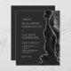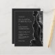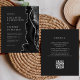 A borda direita deste elegante convite de casamento moderno apresenta uma aquarela preta, borda agitada com falso brilho prateado. O texto personalizável combina fontes de cinza prateada se, copperplate e itálico estiverem em um fundo preto de ardósia. O verso fornece espaço para detalhes do casamento em um fundo preto de slate sólido, junto com um código QR que os convidados podem digitalizar para visitar seu site e RSVP, o que economiza o custo de imprimir e enviar cartas RSVP separadas.