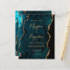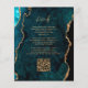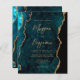 Este elegante convite de casamento apresenta uma imagem de fundo da cor azul lacrimogênea agada aparada com uma falso brilho dourado. O texto personalizável combina manuscrito, protetor e fontes itálicas de cor dourada. O verso fornece espaço para detalhes de casamento em um plano de fundo de agata de chá correspondente, juntamente com um código QR que os convidados podem digitalizar para visitar seu site e RSVP, o que economiza o custo de imprimir e enviar cartões RSVP separados.