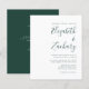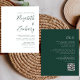 Este simples convite de casamento moderno mostra o texto verde esmeraldo em um fundo branco. Adicione os nomes da noiva e do noivo na caligrafia de escrita manual do na moda e os detalhes na fonte sans serif. O verso fornece espaço para detalhes do casamento em um fundo verde sólido, junto com um código QR que os convidados podem digitalizar para visitar seu site e RSVP.