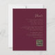 Economize o custo de imprimir e enviar cartões RSVP separados com este simples e moderno convite de casamento de orçamento integral, com texto dourado em um fundo vermelho arrojado. Adicione os nomes da noiva e do noivo na caligrafia de escrita manual do na moda e os detalhes na fonte sans serif. O verso oferece espaço para detalhes do casamento, junto com um código QR que os convidados podem digitalizar para visitar seu site e RSVP.