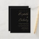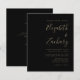 Economize o custo de imprimir e enviar cartões RSVP separados com este convite de casamento simples e moderno, com texto dourado em fundo preto. Adicione os nomes da noiva e do noivo na caligrafia de escrita manual do na moda e os detalhes na fonte sans serif. O verso oferece espaço para detalhes do casamento, junto com um código QR que os convidados podem digitalizar para visitar seu site e RSVP.