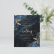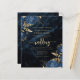 Este elegante convite para o casamento apresenta buquês florais azuis marinhos disparados com verde folha de ouro em dois cantos, em uma imagem de fundo de agate azul marinho. O texto personalizável combina fontes de serifa, itálico e escrita manual douradas. O verso oferece espaço para detalhes do casamento, juntamente com um código QR que os convidados podem digitalizar para visitar seu site e RSVP, o que economiza o custo de impressão e envio de cartões RSVP separados.