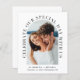 Um convite de casamento moderno e amigável, com orçamento, com sua foto em um quadro arquivado cercado por "Celebrar Nosso Dia Especial Conosco" em texto elegante. Sob sua foto, adicione seus nomes, data do casamento e local. No verso, personalize seu convite em uma simples tipografia e insira seu endereço no site do casamento para criar um código QR para seus convidados digitalizarem para RSVP on-line e obter detalhes adicionais de casamento, como acomodações.