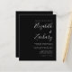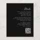 Este simples convite de casamento moderno apresenta um texto branco sobre um fundo preto. Adicione os nomes da noiva e do noivo na caligrafia de escrita manual do na moda e os detalhes na fonte sans serif. O verso fornece espaço para detalhes do casamento em um fundo preto sólido, junto com um código QR que os convidados podem digitalizar para visitar seu site e RSVP.