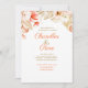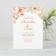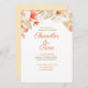 O Convite para Casamento de Convênio Floral do Ouro tem um arranjo floral exuberante no topo da papelaria de casamento, que inclui flores e folhas douradas, castanhas e escamosas, com a quantidade certa de flores laranja vibrantes, aspergidas. Esta é uma bela escolha para um casamento elegante ou um casamento ao ar livre como um casamento de jardim ou um casamento no quintal. Essas lindas flores também se ajustados com um casamento rústico, um casamento country ou qualquer cerimônia realizada no primavera ou verão.