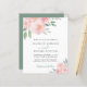 Convite de casamento elegante e econômico com buquês de aquarela de florais cor-de-rosa pincelado e verde-sábio claro, roteiro de na moda e tipografia moderna.