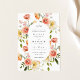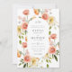 O convite para Casamento do Jardim Elegante apresenta buquês coloridos de florais cor-de-rosa e corais. Personalize com suas informações ou clique em "Clique para personalizar mais" para editar estilos de fonte, tamanho e cores.