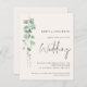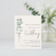 Um valor para o alternativo do ORÇAMENTO em tamanho menor de 4,5 x 5,6" de semirbrilho de 110 lbs, que é de espessura semelhante a um cartão postal (no entanto, não é adequado para uso como cartão postal). POR FAVOR, OBSERVE QUE HÁ UM convite por folha. Código QR do orçamento Sage Eucalyptus Cream Wedding Convite. Adicione seu código QR ao seu site de casamento no verso faz com que esta seja uma opção conveniente para seus convidados para RSVP e veja todos os detalhes sem a necessidade de RSVP separado e cartões de detalhes. Estilo botânico minimalista, com um roteiro manuscrito para o casamento e o resto do texto que você pode personalizar facilmente. Um galho elegante de folhas de aquarela eucalipto corre pelo lado esquerdo.