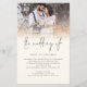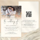POR FAVOR, OBSERVE QUE HÁ UM convite por folha. Convite de Casamento de Criação de Código de Script QR de Foto de Orçamento. Um tamanho maior de 5,5" x 8,5" a um preço orçamentário. OBSERVE QUE OS ENVELOPES OPCIONAIS SÃO UM POUCO MAIORES EM TAMANHO A 6,75" x 9" aproximadamente. Com um código QR para o seu site de casamento no verso para que seus convidados possam RSVP e ver todos os detalhes on-line sem a necessidade de gabinetes separados. Seu código QR será gerado automaticamente para atualizar o código de amostra no design, quando você simplesmente alterar o URL de amostra no modelo com o URL do seu próprio site de casamento. Uma tipografia informal em preto para o título principal "Casamento de complementar o resto do texto que você pode facilmente personalizar". Substitua a foto de exemplo pelo seu favorito.