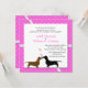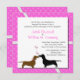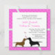 O convite para o casamento foi feito num rosa quente e divertido, com antecedentes de corações brancos. Uma área de texto branco sobre o fundo é decorada, com um dachshund marrom e preto, com corações entre eles. Todo texto é personalizável para atender às suas necessidades de casamento. Adoráveis amantes de cachorro convidam para o casal amoroso.