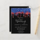 Convide seus amigos e família para comemorar seu dia especial com esses cartões de convite para casamento de preto vermelho e azul. Personalize com seus nomes e todas as suas informações de casamento. Esta coleção de casamentos tematizada da bandeira americana será uma favorita entre todos os militares, veteranos e forças armadas. Visite nossa coleção patriótica de casamento para convites para casamento vermelho branco e azul, favores de casamento, suprimentos de festa. COPYRIGHT © 2020 Judy Burrows, Black Dog Art - Todos Os Direitos Reservados. Convite de casamento Elegante Preto Vermelho Azul Brilhante