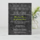Prepare o humor assustador para o seu casamento com o Halloween! Um fundo verde escuro definido com um escrevendo indistinguível mostra uma borda superior feita de teias de aranha individuais. Seu texto assustador toca o tom para tornar seu casamento o mais assustador de sempre. Disponível com produtos correspondentes.