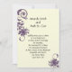 Roxo e marfim com elementos florais. Personalize com o seu próprio Este convite é perfeito para a noiva de um orçamento, as informações de RSVP estão no verso. Se quiser cartões de resposta ou cartões de menu separados, envie um e-mail para shutterbug600@yahoo.com. Se quiser mover o texto ou alterar o tamanho, a fonte ou a cor, clique em Personalizar.