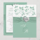 Este convite para o casamento floral branco e verde de menta moderno tem uma fita verde de sábio IMPRESSA e cinzas verdes e prateadas IMPRESSAS corações nela, com a palavra amovível "LOVE" em uma fonte de estilo vintage. Seria perfeito para um casamento de primavera ou verão, festa de noivado ou aniversário. Alguns dos papéis mudarão a cor do design, então tenha cuidado se você escolher o papel de feltro, pois ele pode amarelo a aparência mais do que você deseja. EU NÃO usaria os papéis metálicos de ouro, prata ou champanhe, já que eles escurecerão o design sem acrescentar mais faísca do que o que você obteria com o papel metálico de gelo. ALÉM DISSO, se você redimensionar o convite ou se você alterar fontes ou o tamanho da fonte, parte do design e/ou texto pode ser cortada. Tudo será impressão como você vê no seu monitor. Não verei seu convite, e Zazzle NÃO corrigirá nada (digitação, alinhamento etc.). O texto e o papel são todos personalizáveis. Se precisar de ajuda para este convite, envie-me um e-mail ANTES de fazer seu pedido. Se você precisar de outros itens correspondentes, envie um email para niteowlstudio@gmail.com.