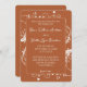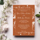 Convide convidados para o seu próximo casamento com um Convite de Casamento Flourado Laranja Queimado. O design de convite apresenta uma folha elegante floresce com fundo colorido correspondente. Personalize com os nomes do noivo e da noiva junto com a data do casamento e a localização. Material adicional disponível com esta design também.