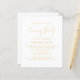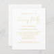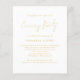 Um valor para o alternativo do ORÇAMENTO em tamanho menor de 4,5 x 5,6" de semirbrilho de 110 lbs, que é de espessura semelhante a um cartão postal (no entanto, não é adequado para uso como cartão postal). POR FAVOR, NOTE que existe UM por folha. Convite de Casamento de Festa QR Noite do Script Dourado de Orçamento. Adicione seu código QR ao seu site de casamento no verso para que seus convidados possam RSVP e ver todos os detalhes on-line sem a necessidade de gabinetes separados. Coloque a tipografia em ouro para o título principal Partido da Noite que complementa o resto do texto que você pode facilmente personalizar.