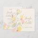 Coral laranja, pétalas amarelas de confete e um convite para casamento artístico de uma flor quente. Edite este convite com suas palavras. Design exclusivo por Sarah Trett. com