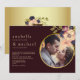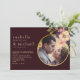 Celebre o seu amor com este convite de casamento burgundy romântico que apresenta detalhes dourados elegantes, um design de canto floral vibrante e uma foto personalizada. A paleta de cores rica e sombria e as fontes serifadas modernas tornam-no ideal para casamentos de verão e outono. Perfeito para casais que procuram um convite luxuoso, mas de coração, que combina charme atemporal com um toque pessoal.