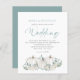 Um valor para o alternativo do ORÇAMENTO em tamanho menor de 4,5 x 5,6" de semirbrilho de 110 lbs, que é de espessura semelhante a um cartão postal (no entanto, não é adequado para uso como cartão postal). POR FAVOR, NOTE que existe UM por folha. Convite De Casamento De Folhagem Teal Pumpkins. O casamento está em um roteiro de na moda e personaliza facilmente o resto do texto. Três abóboras brancas com folhagem azul-lacrimogênea e florais brancos estão no fundo para uma sensação de outono.