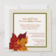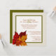 Adorável convite de casamento colorido com um verde-musgo e um quadro colorido ao redor do exterior. Folhas coloridas saem decorando o canto inferior esquerdo e um texto cor de ferrugem está pronto para personalizar o seu casamento de outono. Muito na moda e convite.