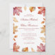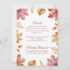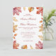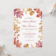 Convide amigos e familiares para o seu casamento de outono com este convite, apresentando folhas de aquarela em cores de outono. Este cartão é perfeito para noivas e noivos que estão usando um site de casamento e querem economizar dinheiro em papelaria. Não há necessidade de vários cartões de inclusão quando você usa este convite. Este convite também pode ser baixado e enviado eletronicamente ou impresso localmente.