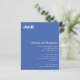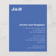 Este convite de casamento minimalista oferece um design moderno e elegante, com um rico fundo azul em papel econômico. A frente do cartão é elegantemente arranjada com iniciais ousadas no topo, acrescentando um toque moderno e personalizado, enquanto os detalhes do casal e as informações do casamento são apresentados em tipografia simples e limpa. O verso oferece espaço para uma foto de cheio, perfeita para uma imagem romântica do casal. Ideal para casais modernos que buscam equilibrar estilo com orçamento, esse convite traz sofisticação a qualquer tema de casamento sem comprometer a elegância.
