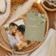 Celebre o seu amor com este convite romântico de casamento de fotos verdes da sábio. Apresentando um fundo verde macio, delicados sotaques florais em cor de pêssego e branca, e espaço para sua foto favorita, este design combina elegância do eterno com um toque pessoal. O roteiro e as fontes serif adicionam um talento moderno, mas clássico, e o fazer perfeito para casamentos de jardim, cerimônias de primavera ou celebrações rústicas-quicas. Personalize facilmente com seus detalhes de casamento e carregue sua foto de noivado para uma manutenção realmente memorável.