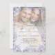 Este convite para o casamento é feito em um delicado estilo aquoso com detalhes antigos e antigos, criando um encanto antigo que parece eterno e romântico. As flores moles de aquarela em tons de roxo e azul destacam a elegância do design, enquanto a tipografia clássica dá ao convite um apelo sofisticado e antigo. Perfeito para casais que amam a arte da safra, este convite combina a pintura floral de aquarela, inspiração do mundo antigo e um design gracioso para dar o tom para uma celebração inesquecível. Com o seu encanto antiquado e a beleza floral vintage, este convite para o casamento é um espantoso guardião que combina a tradição com o detalhe artístico.