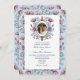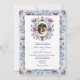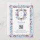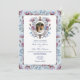 Celebre seu amor pela elegância do eterno com este romântico convite de casamento inspirado na Chinoiserie. Apresentando um fundo azul pastel empoeirado adornado com motivos florais cor-de-rosa, o quadro barroco ornamentado contém uma foto pessoal na frente e suas iniciais no verso. A design é aperfeiçoada com detalhamento luxuoso de Rococo e delicados sotaques botânicos. O inverso inclui um código de QR integrado para RSVP e acesso ao site de casamento, oferecendo conveniência moderna com sofisticação vintage. Ideal para casamentos de jardim, locais europeus, ou casais que amam encanto real e romance clássico.