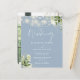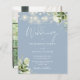Este elegante convite de casamento azul empoeirado, com luzes de cordas bonito e verde floral, pode ser personalizado com suas informações em tipografia gráfica com sua foto especial no verso. Projetado por Thisnotme©