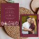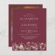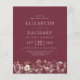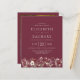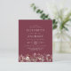 Um design boho floral que apresenta uma borda inferior de flores silvestres burgundy de cor d'água. Edite facilmente o texto do marfim em um fundo burgundy e adicione uma foto vertical no verso.