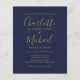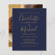 Apresentando sua foto, nomes de estilo de assinatura, este elegante convite de casamento azul de marinho de orçamento pode ser personalizado com suas informações em caracteres de ouro-chico. Projetado por Thisnotme©