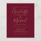 Apresentando sua foto, nomes de estilo de assinatura, este elegante convite de casamento burgundy de orçamento pode ser personalizado com suas informações em letras de ouro cômico. Projetado por Thisnotme©