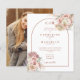 Linda pintura floral, gramíneas, aquarelas e molduras de arco-íris, seus detalhes especiais de celebração de casamento e suas iniciais monogramas, definidas em na moda terracotta typografia e sua foto especial no verso neste elegante convite para o casamento. Projetado por Thisnotme©