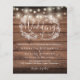 Com luzes bonito de cordas e uma terra foliar desenhada à mão, este elegante convite de casamento rústico em kraft, pode ser personalizado com suas informações em caracteres chicos em um fundo de painéis de madeira e sua foto especial no sentido inverso. Projetado por Thisnotme©