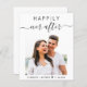 Convite de casamento amigável, com sua foto e "Feliz Sempre Depois" em uma mistura de simples tipografia e um roteiro de chic com sujeiras. E seus primeiros nomes e data de casamento se juntaram com um coração. No verso, personalize seu convite em tipografia elegante. Este papel semirbrilhante do orçamento é semelhante em peso ao papel fotográfico. Também está disponível uma versão maior do estoque de cartão tradicional 5x7 (mensagem para o link).